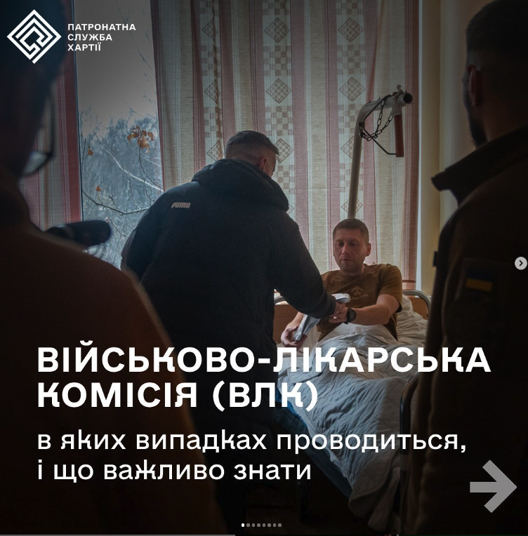 Патронатна служба Хартії повністю супроводжує бійця та його родину на шляху від поранення до реабілітації. Забезпечує необхідним, допомагає з документами та консультує на кожному етапі, щоб боєць міг зосередитися на повноцінному відновленні після поранень.